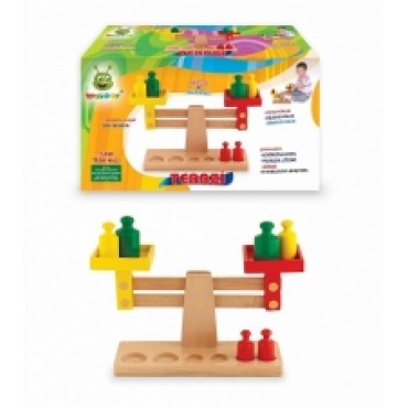 Ölçmeye yarayan ahşap terazi ile çocuklar, büyük - küçük, ağır - hafif gibi zıt kavramları..