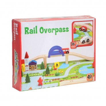 Ahşap Eğitici Araba Yolu 40 Parça Seti Renkli kara taşıtları, evler ve köprülerle kendilerine h..