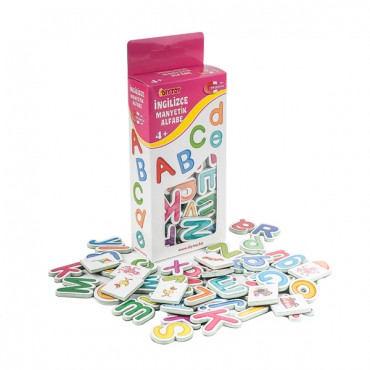 Kutu içinde 29 manyetik büyük harf, 29 manyetik küçük harf, 4 kelime yazmaya yardımcı bonus harf ve ..